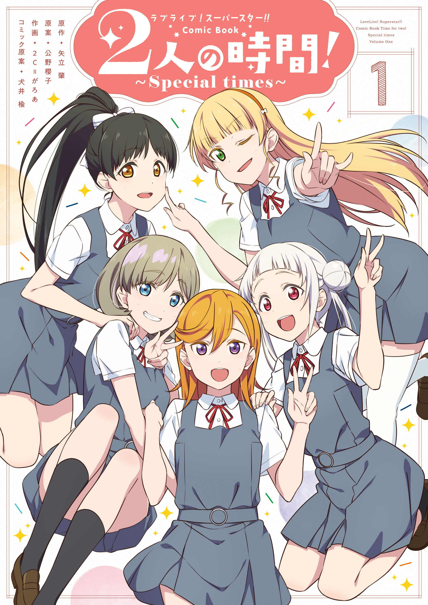 アニメイト特典(全巻購入):OP主題歌ポーズイラスト使用サテンステッカー9枚セット・描き下ろしイラスト(澁谷かのん、鬼塚夏美)使用B7アクリルブロック・描き下ろしイラスト(澁谷かのん、鬼塚夏美)使用B2タペストリー※特典は無くなり次第終了。